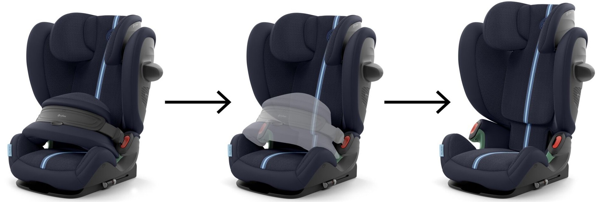 PALLAS G3 i-Size má polohovatelné sedadlo nejen pro mladší děti, ale také pro příjemný odpočinek starších dětí. Polohování je nově u řady PALLAS dostupné po celou dobu používání autosedačky.