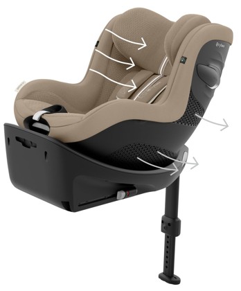 Pomocí speciálních kanálků umožňuje proudění vzduchu v autosedačce, odvádí nadměrné teplo a pomáhá předcházet pocení za jízdy.